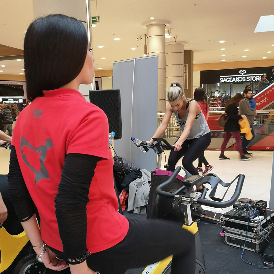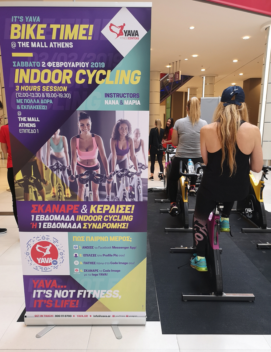 Από το Σάββατο το μεσημέρι στο μεγαλύτερο εμπορικό κέντρο της Αττικής, σε έναν ειδικά διαμορφωμένο χώρο, οι πολίτες είχαν την ευκαιρία να ενημερωθούν με διαδραστικό τρόπο από έμπειρους γυμναστές και στελέχη των Yava Fitness Centers για τα οφέλη του Indoor Cycling.